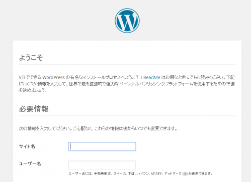 ブラウザでアクセスし、以下のWPインストール画面が表示されていればOK。