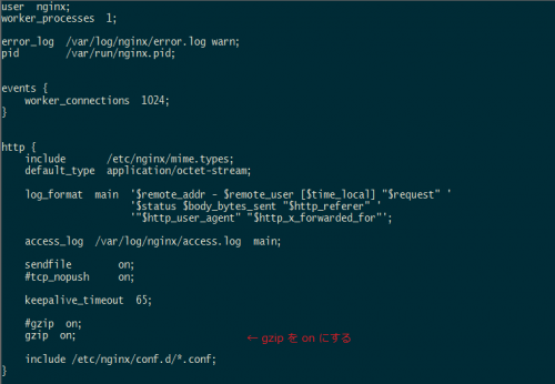 gzip_proxied any; #Proxy経由のアクセスもgzip対象にします。